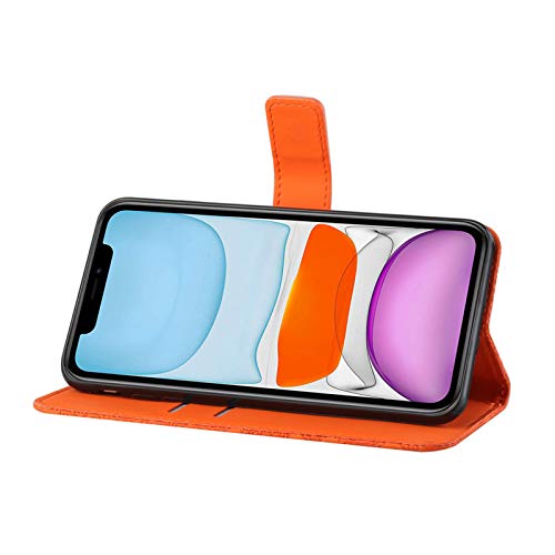LJP Cover iPhone XR, Goffratura Custodia di Pelle Flip Case Portafoglio Libro con Chiusura Magnetica Funzione Supporto Slot per Schede TPU Bumper Custodia per iPhone XR - Arancia