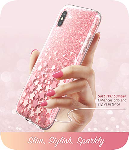 Cover iPhone Xs Max, i-Blason Custodia Brillantini e Protezione Schermo Integrata [Serie Cosmo] Glitter Case Compatibile con Apple iPhone Xs Max 2018, Rosa