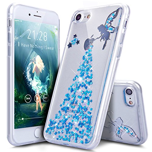 Cover iPhone 8,Cover iPhone 7,ikasus Bling scintillio della scintilla Stelle della ragazza Angelo Trasparente Silicone Gel Case Cover Crystal Clear Custodia Cover per iPhone 8/7 Custodia,Blu