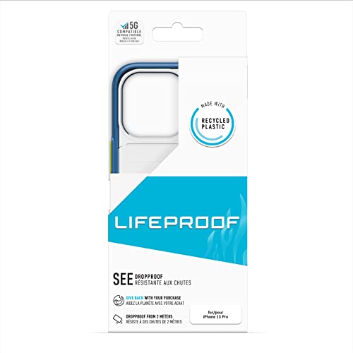 Cover per iPhone 13 Pro LifeProof SEE, resistente a shock e cadute fino a 2 metri, cover Ultrasottile, protettiva trasparente, progettata in modo sostenibile, Trasparente/Blu