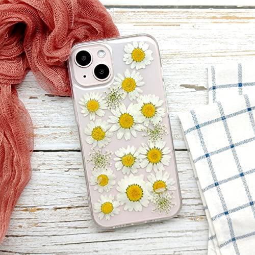 F&X Cover per iPhone 13 Mini, motivo: fiori secchi, camomilla, ragazza, in silicone, trasparente, colore: bianco