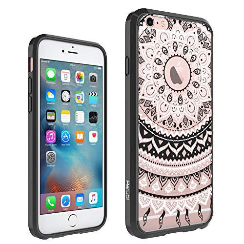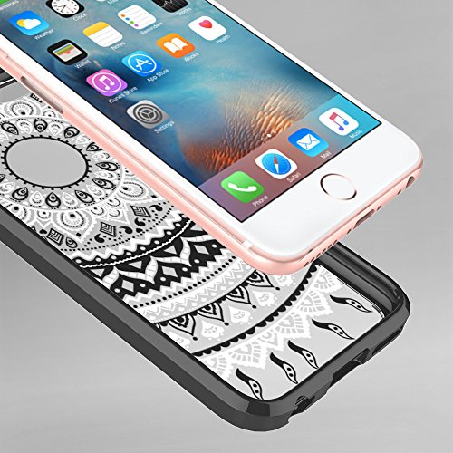 Cover iPhone 6s, Cover iPhone 6, Parubi Mandala Hybrid Case, Cover Custodia Bumper Trasparente Silicone TPU Protezione Antiurto, Retro Crystal Clear Rigido Antigraffio Per Apple iPhone 6 e 6s - Nero
