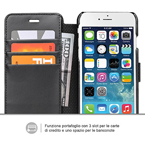 Cover iPhone 6S / iPhone 6 in Pelle TANCC [pellicola vetro temperato schermo inclusa] Con Magnete e Supporto Orizzontale Caratteristiche - Nero