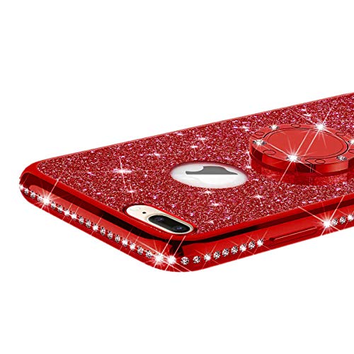 Cover iPhone 8 Plus,Cover iPhone 7 Plus,[Anello supporto] Bling Scintillio Lucido Glitter Diamanti Strass Paraurti Placcante Morbido Silicone TPU Gel Custodia Case Cover per iPhone 8 Plus/7 Plus,Rosso
