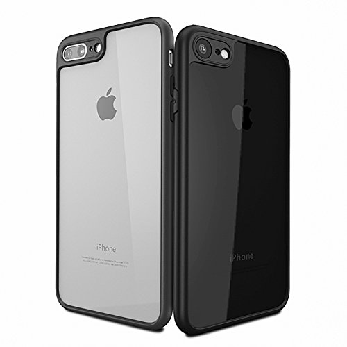 OWM, cover per iPhone 7 Plus, la cover bumper più sottile al mondo, in silicone TPU con copertura posteriore trasparente,colore nero