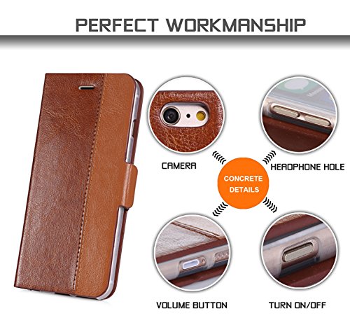 Cover iPhone 6 Plus,Cover iPhone 6S Plus,Custodia iPhone 6 Plus,Fyy Lussuosa Custodia del Cuoio Genuino Copertura Tutta Potenteper Apple iPhone 6/6S Plus (5.5 Pollici) Marrone (2 Colori Miscela)