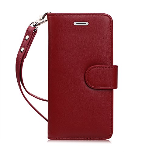 FYY Cover iPhone 6 Plus, Cover iPhone 6S Plus, Flip Custodia Portafoglio Libro Vera Pelle con Porta Carte e Chiusura Magnetica per iPhone 6/6S Plus-Borgogna