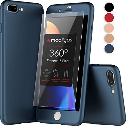 ✅ Custodia iPhone 7 PLUS 360 Gradi in 3 Parti: Protezione Anteriore + Protezione Posteriore + Vetro Temperato per lo Schermo