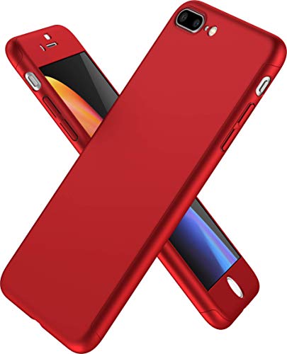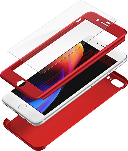 Cover iPhone 7 PLUS 360 Gradi e Vetro Temperato - Custodia Davanti e Dietro Integrale per iPhone 7 PLUS - Protezione Completa Fronte e Retro con Pellicola Protettiva, Ultra Sottile e Rigida (Rossa)