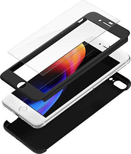 Cover iPhone 7 PLUS 360 Gradi e Vetro Temperato - Custodia Davanti e Dietro Integrale per iPhone 7 PLUS - Protezione Completa Fronte e Retro con Pellicola Protettiva, Ultra Sottile e Rigida (Nera)