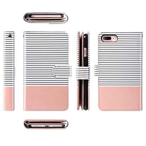 Cover iPhone 7 Plus in PU Pelle, ULAK Custodia iPhone 7 Plus portafoglio richiudibile con funzione cavalletto Flip Cover per Apple iPhone 7 Plus - In ecopelle con foro per inserimento scheda 5.5"-Rose Gold Stripes