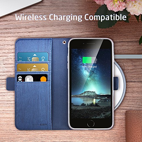 ESR Cover iPhone 8 Plus [Supporta la Ricarica Wireless], Cover iPhone 7 Plus, Custodia Portafoglio a Libro da Ecopelle con Porta Carte per Apple iPhone 8/7 Plus da 5.5 Pollici. (Blu & Grigio)