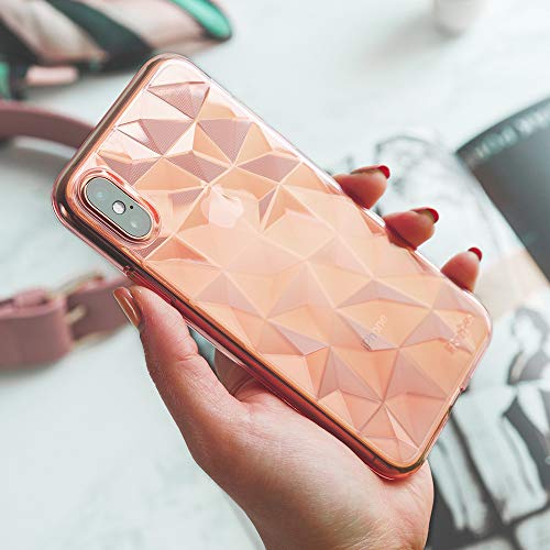 Cover iPhone X, Ringke [AIR PRISM] 3D Design Vogue Ultra Chic Piramide Bella Elegante Fantasia a Diamante Flessibile Trama Protettiva Simile a Gioiello Cover TPU Resistente - Cristallo Oro Rosa