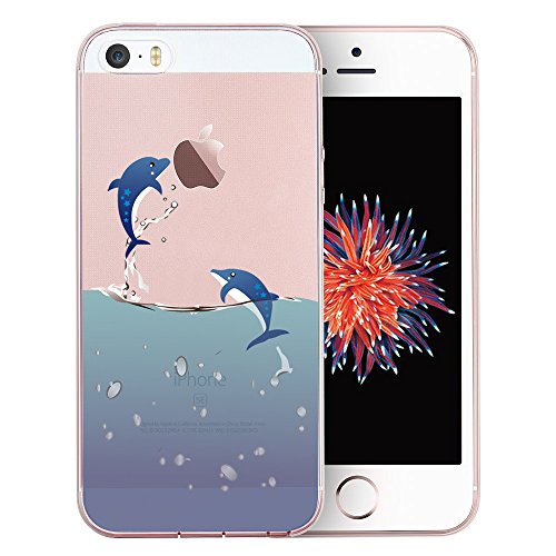 Cover iPhone SE, TrendyBox Cute Trasparente Case Cover per iPhone 5 5S SE (Delfino Volante)