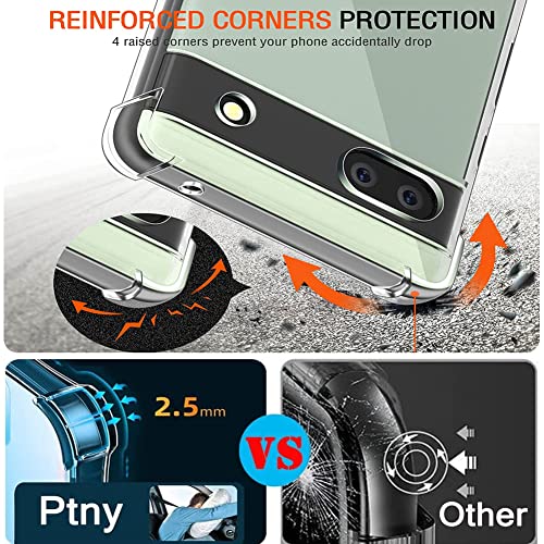 ⑤【All-round Proteggere】:Protezione precisa della fotocamera con copertura completa, 1 mm raised edge is higher than of the screen and the camera of the Google Pixel 6A to prevent it from being damaged if dropped on a flat surface. Design unico di assorbimento degli urti: L'airbag a 4 angoli assorbe efficacemente l'urto in caso di caduta.