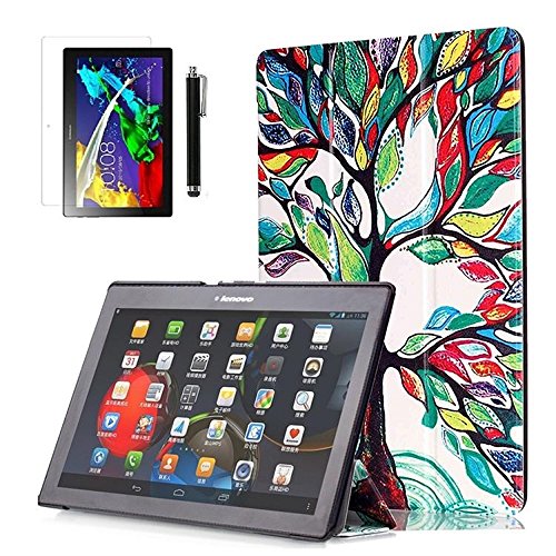 Cover Lenovo Tab 2 A10-30F,PU Pelle Flip Cover per Tab 3 10 Business/Lenovo Tab 2 X30F A10-30F & Lenovo Tab 2 A10-70 Tablet Custodia con Supporto + pellicola protettiva + Pennino-Albero variopinto