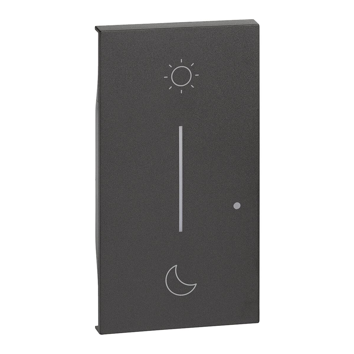 1 modulo, Notte/giorno wi-fi. Superficie facilmente pulibile grazie alla geometria planare del punto luce e al trattamento superficiale delle plastiche utilizzate. Le cover sono fornite di un sistema di autocentratura (self-centering system tm) che permette l'aggangio alla placca mantenendo una perfetta planarità del punto luce. Estetica planare e ergonomia aumentata grazie al nuovo concetto full touch: il comando si può azionare premendo in qualsiasi punto della sua superficie