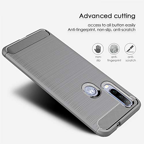 SCL Cover Moto One Action Cover Motorola One Action Cover per Moto One Action, [Grigio] Effetto Spazzolato in Fibra di Carbonio, Anti-Impronta, Resistente all'Usura e ai Graffi