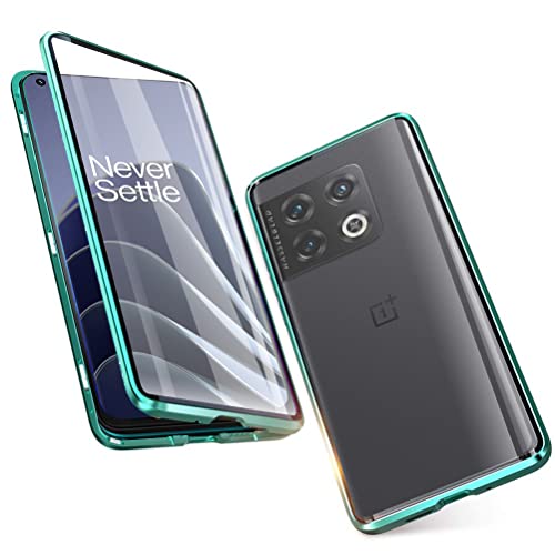 Cover per OnePlus 10 Pro 5G, Custodia Assorbimento Magnetico [Telaio in Metallo] [Doppia Faccia in Vetro Temperato] 360 Protezione Resistente ai Graffi Trasparente Cover, Verde
