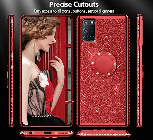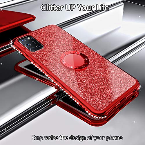 Cover per Oppo A52/A72/A92 Glitter, Custodia Brillantini Lusso Diamanti con 360 Gradi Rotante Supporto, Antiurto Morbida Case Protettiva Ultra Sottile di Silicone TPU - Rosso