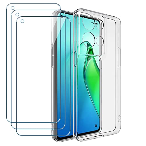 Cover per Oppo Reno 8 5G + [3 Pezzi] Vetro Temperato, Weideworld Ultra Sottile Trasparente Antiurto Morbido Silicone TPU Custodia Protettiva Case
