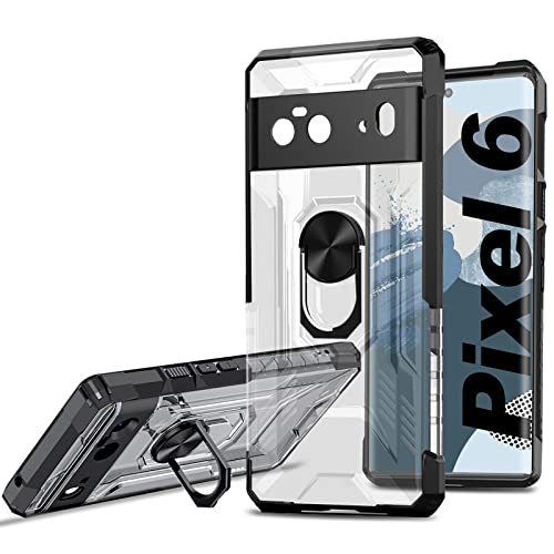 Cover Pixel 6, custodia Pixel 6 Anello Magnetico Materiale Tup+PU, compatibile con Google Pixel 6 Cover Armatura Militare Materiale Cover per Pixel 6 5G Nero