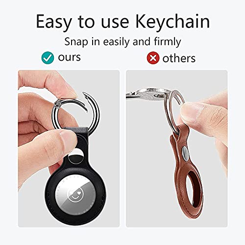 Cover Portachiavi Compatibile per AirTag, [4 pezzi] Keyring per Airtag custodia in Vera Pelle, Cover protettiva ultrasottile antiurto e antigraffio, [10 pezzi pellicola protettiva]