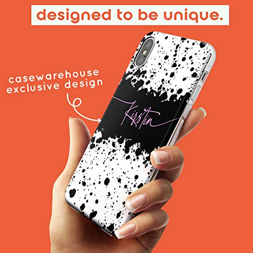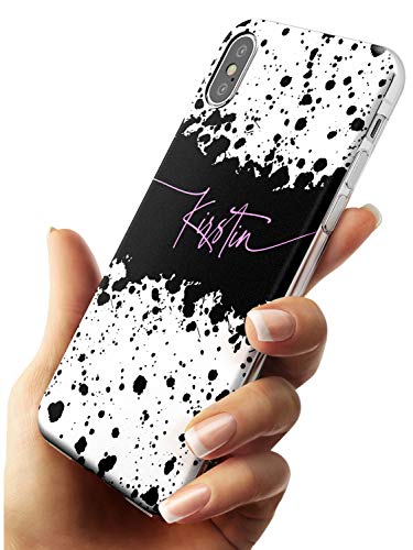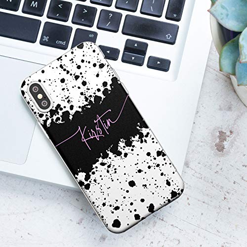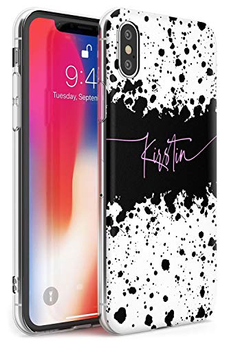 Cover protettiva per iPhone XS Max, in poliuretano termoplastico, con motivo a schizzi di vernice nera e bianca, con nome personalizzato ad acquerello