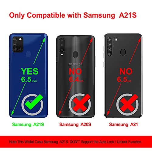 COVER IN PELLE PREMIUM - Realizzato in ecopelle di alta qualità con belle cuciture è morbido e flessibile. Ogni Custodia per Samsung Galaxy A21S sembra lussuosa sia per gli uomini che per le donne. Funziona alla grande con la maggior parte degli scenari di utilizzo dello smartphone: bastone solfuro, proteggi schermo, foto flash e AP Pay / NFC. Particolarmente favorito da uomini e donne che viaggiano molto.