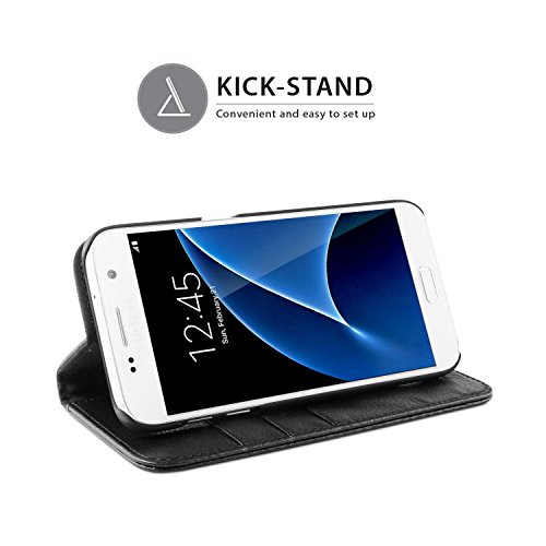 BEZ Cover Samsung S7, Custodia Compatibile per Samsung Galaxy S7, Cover protettiva in pelle con porta carta di credito, Kick Stand, borsellino- Nero