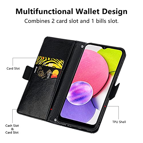 Cover Samsung Galaxy A03s / A02s, Custodia Flip Pelle Portafoglio, Magnetica Libro Slot Schede Galaxy A03s Cover, Silicone TPU Bumper Wallet con Supporto Antiurto Case Per Samsung A03s/A02s Nero