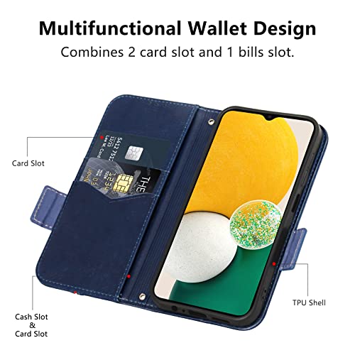 Cover Samsung Galaxy A04s / A13 5G, Custodia Flip Pelle Portafoglio, Magnetica Libro Slot Schede Galaxy A04s Cover, Silicone TPU Bumper Wallet con Supporto Antiurto Case Per Samsung A04s / A13 5G Blu