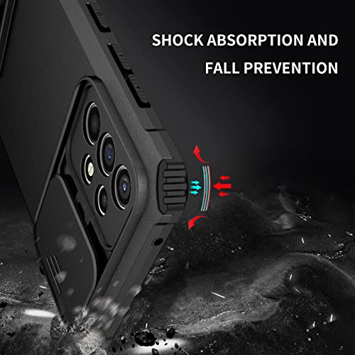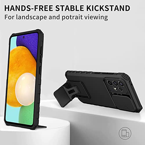Cover per Samsung Galaxy A52S 5G / A52 4G / 5G, Robusta Hard PC Back Cover e Silicone TPU Bumper AntiGraffio Antiurto Antiscivolo Case Custodia con Scorrevole Protezione Fotocamera e Supporto - Nero