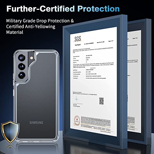 [Protezione contro gli urti e le cadute certificata qualità militare] LK cover ottenuta autorizzazione internazionale SGS (relazione: GZHL2112053689SD), offrendo protezione a 360° per Samsung Galaxy S22. Gli "Airbags" distribuiti su tutti gli angoli consentono di attenuare gli urti dovuti a urti e cadute. Le cover LK per Samsung S22 hanno superato oltre 4800 test professionali, resistenti alle cadute multi-angolo di 6 piedi senza danni, dimostrando che le custodie LK assorbono al 100% gli urti