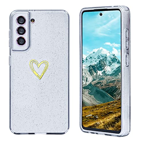 Cover per Samsung Galaxy S22, Custiodia Ultra Sottile Morbido Silicone TPU Antiurto AntiGraffio, Cuore Carino Case Protezione Fotocamera Compatibile con Samsung Galaxy S22, Bianco
