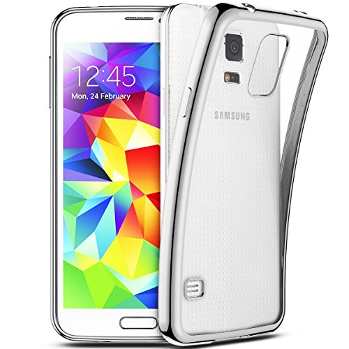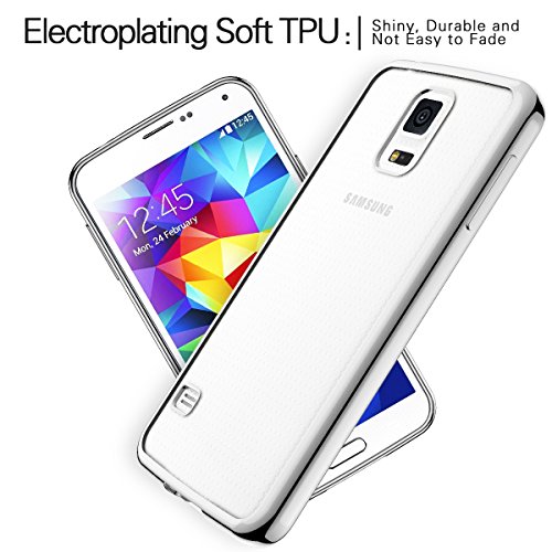 Cover Samsung Galaxy S5, Custodia Samsung Galaxy S5, Coodio Chrome Placcatura Bumper Custodia MORBIDA [Shock-Absorption] TPU Silicone Ultra Trasparente Case Per Samsung Galaxy S5, S5 Neo - Argent