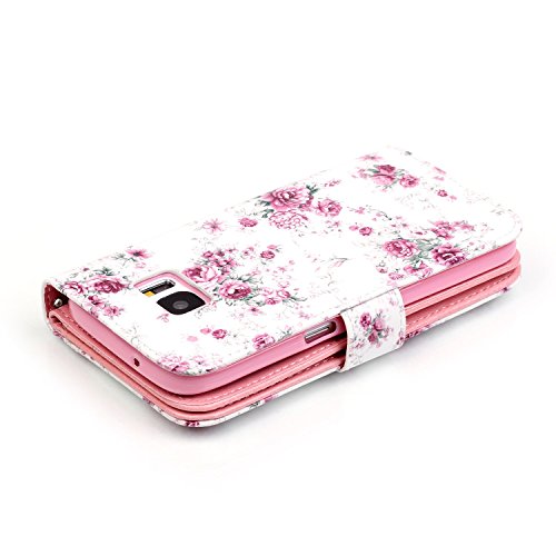 Cover per Samsung Galaxy S7 Custodia in Pelle,TOCASO Premium di Cuoio del Raccoglitore Cover per Samsung Galaxy S7 Sottile Custodia Stile Libro Portafoglio Colorato Flip Wallet Case Supporto Funzione Modello Colorato Fiori Custodia Protettiva Pelle Morbido PU Borsa Shell Backcover Conchiglia Copertura Tacsa con Chiusura Magnetica Porta Carte di Credito Marsupio Caso Covers + 1x Nero Stylus Penna (Flowers)