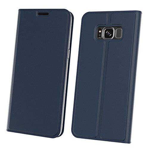 Cover Samsung Galaxy S8 Custodia Slim Libro Design Wallet Caso Luxury Pelle Leather Magnetic Flip Stand Protective Cover with Portafoglio Card Slot for Samsung S8 (Blu)