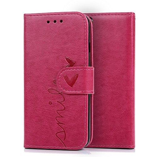 Cover per Samsung Galaxy S7 Edge G935F Goffratura, Custodia per Samsung Galaxy S7 Edge G935F 5.5" Magnetica, Premium Retro Pelle Libro PU e Snap-on Book Style Internamente Silicone TPU Case [2 in 1, Separato] [Pellicole Protettive] - Bonice Stand Flip Wallet Card Slot Fessura Cover Morbido Leather, Amare, Supporto Stand, Portafoglio Porta Carte e Protettiva + 1x Protezione Dello Schermo Screen Protector - Rosa Rossa