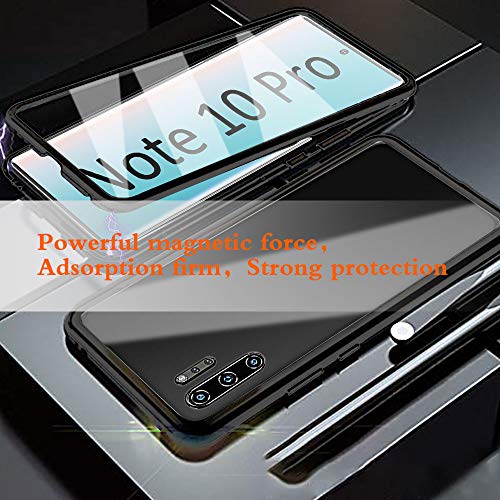 Cover per Samsung Note 10 Plus, Adsorbimento Magnetico Custodia per Samsung Galaxy Note 10 Plus, E-Lush Case 360 Gradi Doppi Lati Trasparente Vetro Temperato Caso Metallo Schermo Flip Cover, Nero