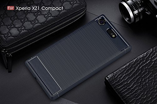 Cover Sony Xperia XZ1 Compact, Custodia resistente, GOGME [Serie fibra di carbonio] Armatura ultra sottile TPU flessibile, antiurto, crash, antipolvere, antigraffio, perfettamente adatta al tuo Sony Xperia XZ1 Compact.blu