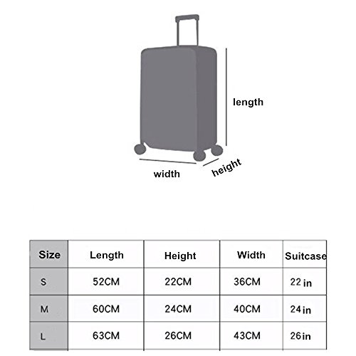 3 taglie disponibili per adattarsi a quasi tutti i bagagli. S: misurazione della memoria di 18-20 pollici, M: misurazione della memoria da 22 -24 pollici, L: misurazione del bagaglio da 26-30 pollici.