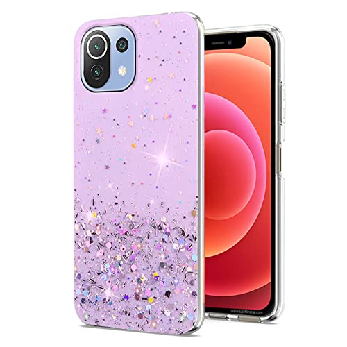 For Cover Xiaomi 11 Lite 5g NE Glitter Rosa Cover Xiaomi Mi 11 Lite 5g Trasparente Sottile Custodia Xiaomi MIi 11 Lite 5g NE Silicone Morbida Brillantini Case (Xiaomi Mi 11 Lite 5g NE, Viola)