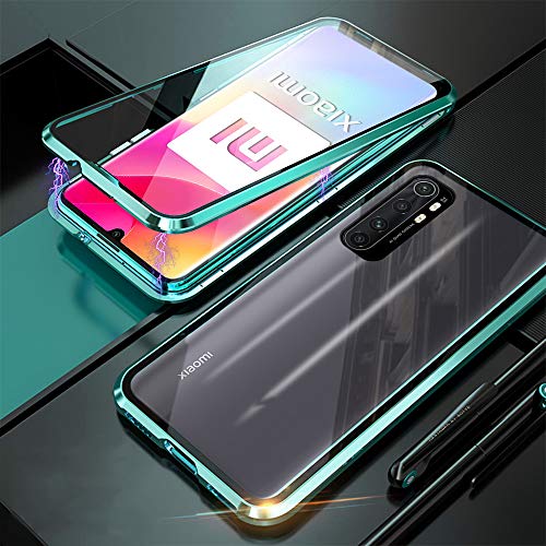 Cover Xiaomi Mi Note 10 Lite,Magnetica Custodia[Cornice Metallica][Doppio Vetro Temperato] Adsorbimento Magnetico 360 Gradi Full Body Trasparente Vetro Temperato,per Note 10 Lite Cassa - Verde