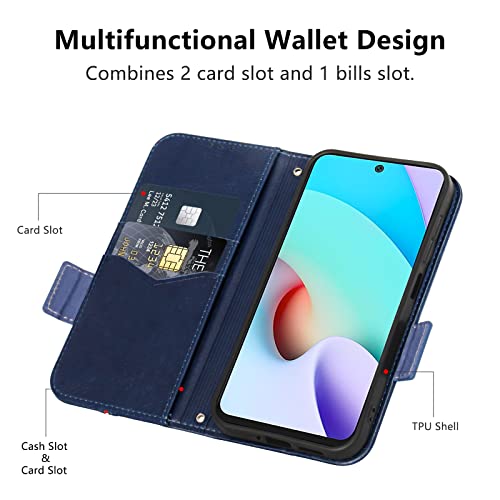 Cover Xiaomi Redmi 10 / Redmi 10 2022, Custodia Flip Pelle Portafoglio, Magnetica Libro Slot Schede Redmi 10 Cover, Silicone TPU Bumper Wallet Antiurto Case Per Redmi 10 / Redmi 10 2022 Blu