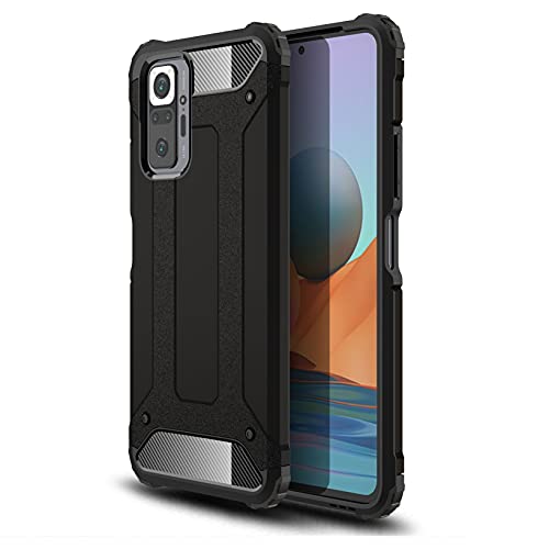 Cover Xiaomi Redmi Note 10 Pro, Custodia 2in1 Dual Layer Ibrida 360° Full Body Protettiva Morbido TPU Silicone Bumper, Rigida Plastica PC Armor Back Antiurto Cover per Xiaomi Redmi Note 10 Pro, Nero