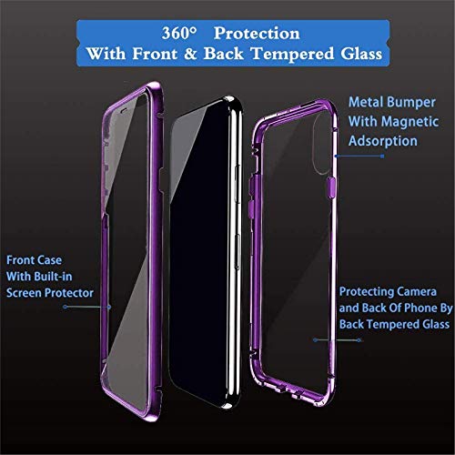 Cover per Xiaomi Redmi Note 10 / Redmi Note 10S, Custodia Adsorbimento Magnetico Ultrasottile 360 Gradi Protezione Full Body Trasparente Vetro Temperato Alluminio Protettiva Copertura Case - viola