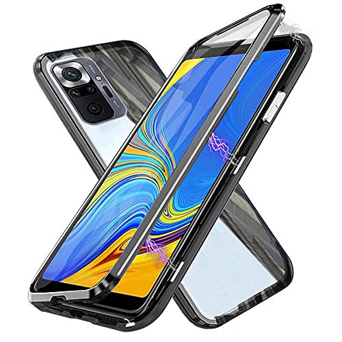 Cover per Xiaomi Redmi Note 10 PRO, Custodia Adsorbimento Magnetico Paraurti in Metallo Fronte e Retro in Vetro Temperato Flip Custodia Magnete 360 Gradi Protezione Case, Nero