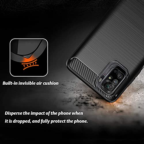 Cover per Xiaomi Redmi Note 10 4G, Nero Robusto Morbido TPU Anti-Caduta Protettiva Custodia con Due Vetro Temperato Pellicola Protettiva per Xiaomi Redmi Note 10 4G / Note 10S 6.43"