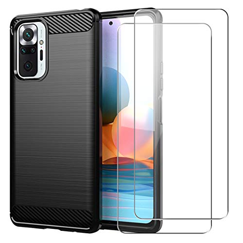 Cover per Xiaomi Redmi Note 10 PRO, Nero Robusto Morbido TPU Anti-Caduta Protettiva Custodia con Due Vetro Temperato Pellicola Protettiva per Xiaomi Redmi Note 10 PRO/Note 10 PRO Max 6.67"